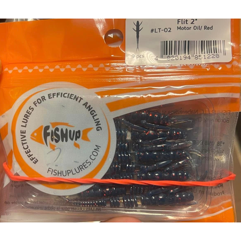 Silikoninis masalas FishUp Flit 2″ (9 vnt.), #019 – Motor Oil/Red